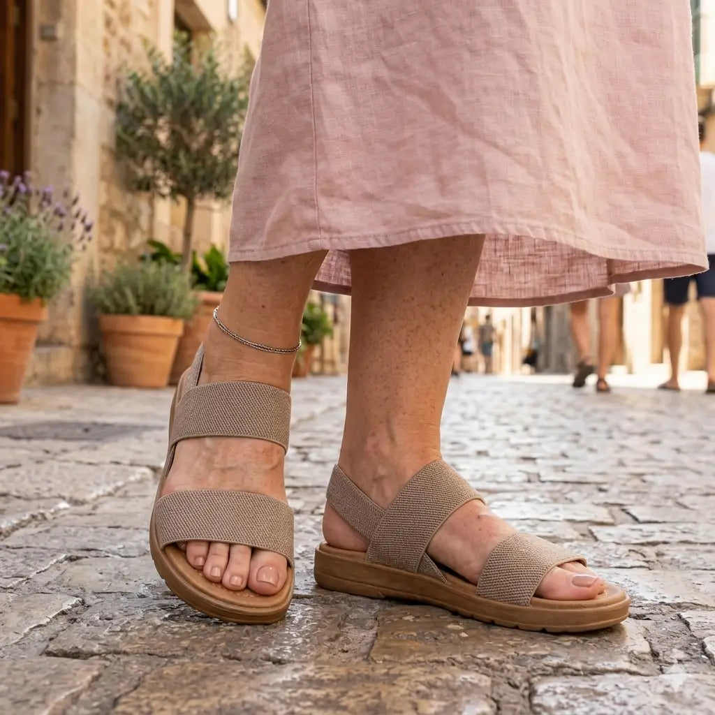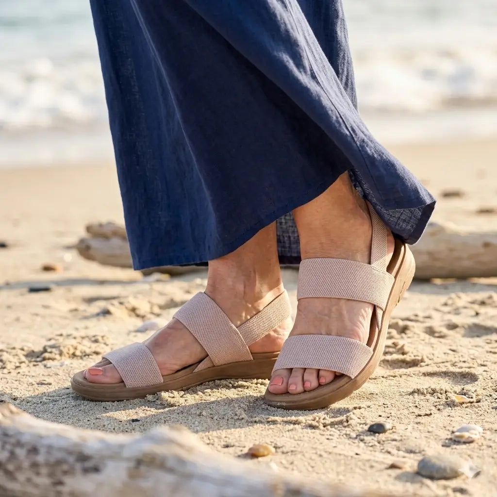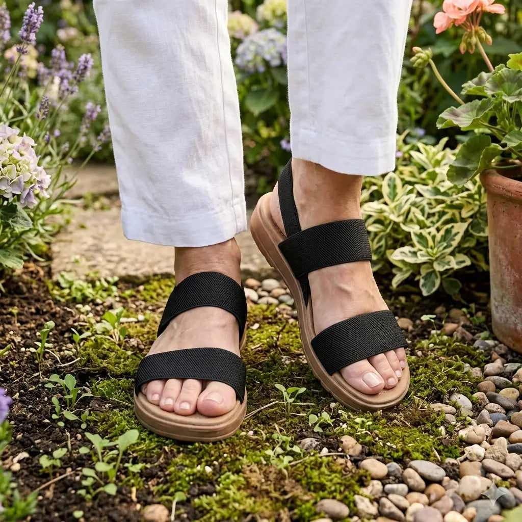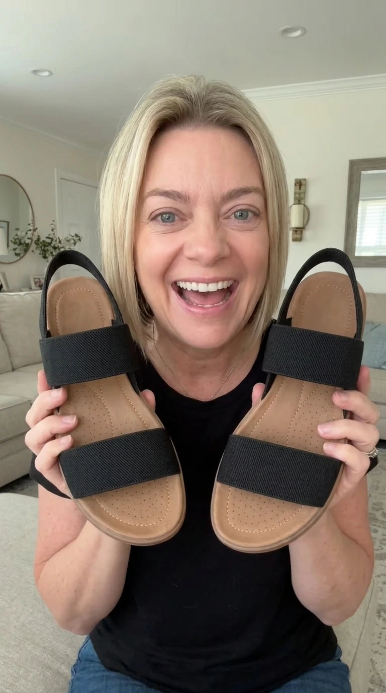 Soft elastic straps that never dig, just the right amount of cushion underfoot. Slip them on and that's it — comfort is there, instantly. Your feet will thank you by the end of the day.